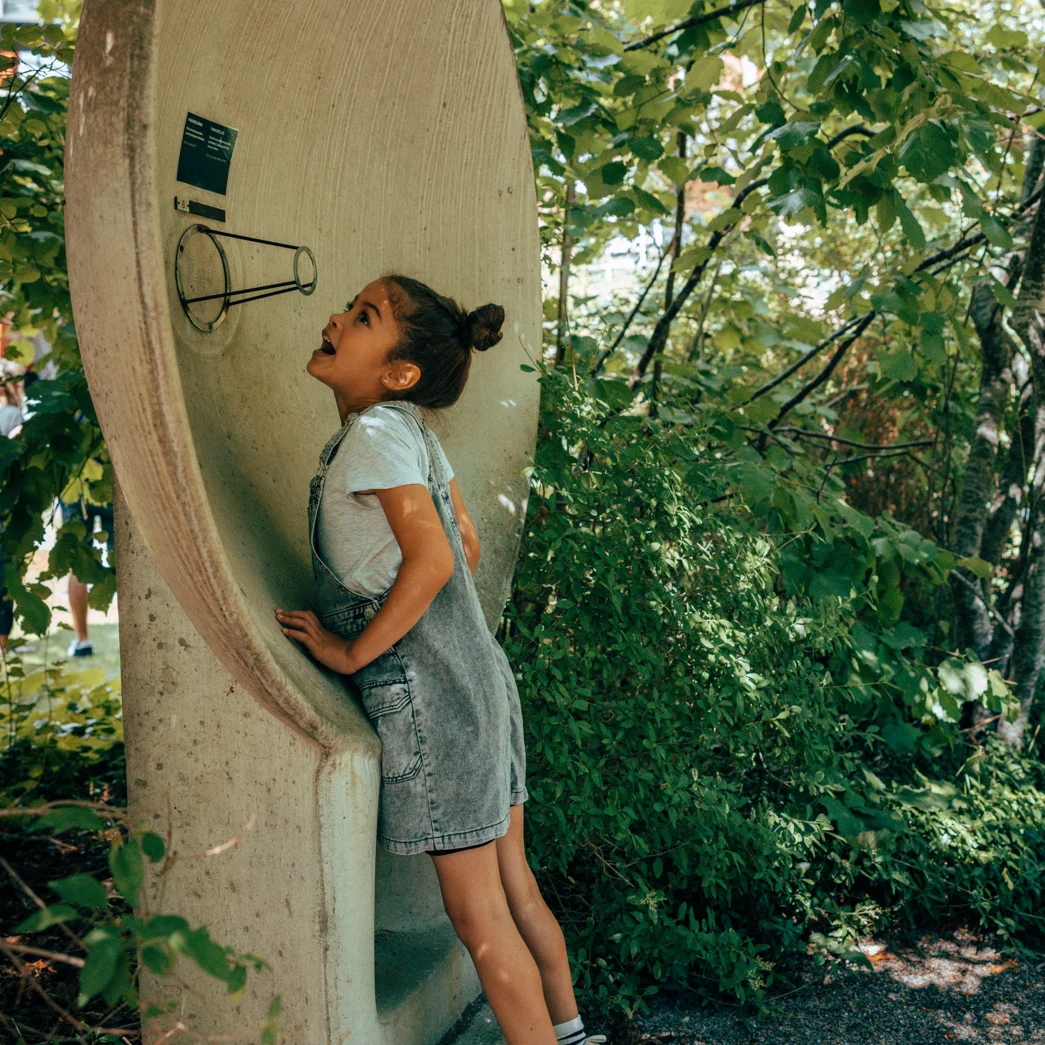 Come inside the ear! Here you can get lost in the semicircular canals, play with bones that look like hammers, and study tissues that help you to balance.