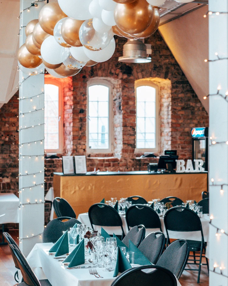 Vår storslagna industrilokal från 1900 är fylld av kreativitet och magi, perfekt för en bröllopsfest. De höga taken, de stora fönstren och de råa industriväggarna skapar en atmosfär som är både pampig och lekfull – en plats där vetenskap får ta plats och där fantasin får fritt spelrum.